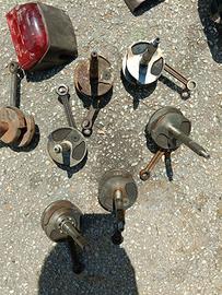 2 fianchetti piaggio si da riverniciare una manopola acceleratore piaggio si filtro Polini piaggio si ciao bravo... manubrio piaggio si 7 alberi motore di cui 2 anticipati a mano 2 un po' arrugginiti sp.10 uno con boccola e uno senza e altri 3 due con boccola e uno senza faro posteriore Piaggio si 3 campane frizione originali due con massette avviamento e una senza per piaggio si ciao bravo... rubinetto benzina piaggio si cuffietta raffreddamento in alluminio per piaggio ciao