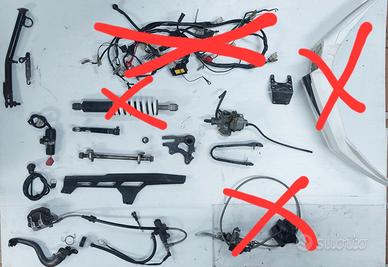 Già venduti: motore, strumentazione, cerchione anteriore, mascherina faro, ammortizzatore, impianto elettrico. Prezzi ed eventuali spese di spedizione, sono da concordare. Possibile vendita in blocco a 150 euro. Rispondo a tutti. Pagamento con paypal o postepay