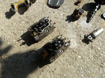 Testate complete di valvole e bilancieri aste punterie piattelli sottoasti pompa diesel ed iniettore collettore di aspirazione albero a camme con ingranagio ed regolatore di giri supporto filtro olio asta livello olio coppa olio tubi olio pompa olio
