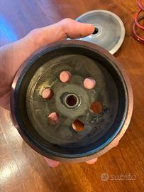Vendo i seguenti pezzi di ricambi in buone condizioni per motori minarelli: -semi puleggia del variatore originale non completo (come si vede in foto) -campana originale -frizione originale con mollette originali -frizione originali con mollette blu -molla di contrasto rossa Possibilità di spedizione con TuttoSubito a carico dell’acquirente.