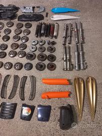 VENDO: IMPIANTI FRENANTI -ho diversi impianti frenanti per diversi scooter f 12, f 10, piaggio.... se vi serve qualcosa in particolare scrivetemi -dischi freno f 12/ f 12r/ f 10/ aerox 3€ -diverse ganasce freno minarelli/piaggio messe bene 5€ la coppia -perni ruote f 12/f 10/piaggio/ zip..... 5€ IMPIANTO DI RAFREDDAMENTO -tubazioni in plastica per f 12 5€ -tubazioni in ferro per f 12 5€ -vaschetta liquido di raffreddamento f 12 5€ RAPPORTI -ho tanti rapporti sia per minarelli che per piaggio se vi serve qualcosa in particolare scrivetemi -carter rapporti minarelli 10€ IMPIANTO ELETRICO -centralina f 12 € 2.3 funzionante 60€ -ho tanta roba di impianti elettrici se vi serve qualcosa in particolare scrivetemi -fanale posteriore 50 special con lampadina 10€ ASPIRAZIONE -carburatore 17.5 con guarnizione della vaschetta da cambiare 10€ -kit cornetti aspirazione malossi in gomma 2 da 42 mm e 2 da 52 mm 5€ l'uno, tutti 15€ -scatola filtro booster con guarnizione nuova senza spugna 10€ VARIE -cilindro originale booster senza test e senza fasce 5€ -telaietto f 12 20€ -telaietto aerox 20€ -sella biposto per f 12 da rifoderare 10€ -manubrio f 12 r 10€ CARENE -ventolini booster/ f 12/ piaggio 5€ -gemme frecce anteriori f 12 5€ -gemme frecce anteriori booster 5€ -strumentazione f 12 con cupolino 40€ -parafango f 12 10€ -plastica forcella f 10 5€ -plastica forcella booster 10€ -sotto manubrio f 10 5€ -codone sella f 12 monoposto 10€ -carene laterali aerox un po rotte 5€ carene manubrio aerox complete (3 pezzi) 20€ -cupolino strumentazione aerox 5€ -carene sopra manubrio booster 5€ -carena sotto manubrio booster 5€ -parasteli ktm sx/exc 2000 15€ -prese d'aria f 12 5€ la coppia -gocce f 12 10€ la coppia -sportellino candela f 10 5€ -sportellino candela booster 10€ ho anche altre cose presenti nel mio profilo posso spedire vendo tutto a 200€ tutte le cose che si vedono in foto anche non scritte