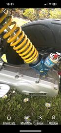 Vendo in blocco ammortizzatore Olins aria/gas, 2 rialzi, 1 radiatore e specchietto. Erano montati su Aerox Yamaha 50 cc
