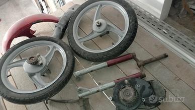 Vendo ricambi originali per si piaggio mix. 1 ruote complete da 16 3 razze con gomme buone euro 150euro. 2 forcella 40€. 3 parafango anteriore 40€ posteriore 30€ 4 cavalletto 20€. 5 motore piaggio Ciao 100€
