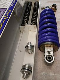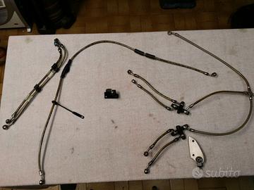 Kit sospensioni: mono Showa con molla progressiva Hyperpro +molle forcella Hyperpro+registri precarico 400€.Scarico completo 4in1 con terminale Honda 450€.Tubi in treccia (freni ant.post.frizione) per eliminazione Cbs (completo di piastra e raccordi) 230€.Semimanubri più alti ed arretrati (Vfr) ma con minor inclinazione 100€.Disponibili anche altri ricambi originali Cbr 1100 XX mod.carburatori come nuovi. Scrivere per info e foto dettagliate.