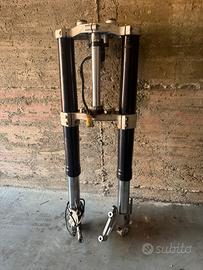 Ktm superduke 990 2008 Devio luci 40€ cadauno Sensore temperatura aria 20€ Cavalletto 25€ Perno ruota ant 35€ Perno ruota post 40€ Tubo freno ant 40€ Tubo freno post 20€ Carene 350€ Serbatoio con pompa benzina 350€ Pompa benzina 100€ Cerchio posteriore completo 220 € Sella 65€ Vaschetta espansione 30€ Serbatoio olio 120€ Forcellone posteriore 120€ graffiato lato catena Pinze freni brembo anteriori 270€ Pinza posteriore 80€ Pompa freno anteriore e leva 110€ (prenotato) Forcella anteriore con piastra 500€ Radiatore 120€ Snorkel airbox 3d 15€ Convogliatori aria freni 3d 10€ Ventola raffreddamento 60€ Valvola aria secondaria 30€ Motorino avviamento 100€ Carter pignone 20€ Corpo farfallato completo di iniettori 250€ Scatola filtro 60€ Filtro bmc 40€ Attuatore frizione 70€ Supporti motore 70€ Candele nuove ngk 30€ Cablaggio completo ( attacco al relais di avviamento tagliato ) 80€ Tubi raffreddamento 15€ Scatola porta batteria 20€ Bobine con candele nuove! 110€ Cavalletto 20€ Volendo posso smontare il motore a pezzi : Alberi a camme 150€ coppia Coperchi punterie 100€ coppia Gruppo frizione 100€ Carter statore 100€ (paraolio contralbero nuovo) Testate 500€ coppia Cilindri 300€ coppia Blocco senza pezzi elencati sopra 450€ Attuatore frizione 70€ Motorino avviamento 100€ Iniettori 100€ Corpo farfallato ( senza iniettori) 260€ E altri accessori su richiesta. Preferibile ritiro a mano a Milano