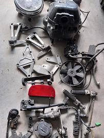 cassa filtro 40 spedito tappo con chiave, commutatore chiave e serratura laterale euro 40 spedite coppia selle euro 40 spedite, 30 singola staffe pedane posteriori 35 spedite disco posteriore ottimo stato 25 spedito fianchetti 35 spediti comandi euro 25 ciascuno spediti rinvio e corda conta km 40 spediti leva frizione con porta leva 15 spedita cavalletto centrale 40 spedito cavalletto laterale 35 spedito plastica stop 15 spedita pompa freno e pinza funzionanti 45 spediti ventola radiatore 30 spedita faro 60 spedito carter pignone 25 spedito tappo radiatore con manicotti 35 spediti