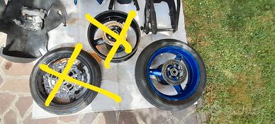 Ricambi per suzuki gsx-r 600 750 modello k4 k5 Disponibili solo i seguenti pezzi: -telaio radiato con documenti 250€ -piastre sterzo complete sup e inf 200€ - Telaietto anteriore riparato 20€ -pompa freno posteriore 20€ - cerchio posteriore completo 120€ - pinze freno ant e post 80€ -tamponi laterali carene 25€ - Perni ruota , rapporti moto 10€ al pezzo