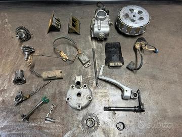 Vendo ricambi per suzuki rm 125 modello 1998 2000 ma adattabili anche su altre annate: Testata Pacco lamellare Carburatore keihin pwk da 36 Centralina Ingranaggio pompa acqua Ingranaggio valvola Carter centrali Coperchio statore Bobina e regolatore Leva messa in moto Ingranaggio messa in moto Ingranaggi vari Campana frizione completa Selettore cambio Disponibili anche ricambi di ciclistica come: cerchio anteriore completo forcelle in discrete condizioni piastre di sterzo mono ammortizzatore forcellone impianto frenante anteriore impianto frenante posteriore pedane e qualche altra cosa Chi é interessato mi contatti in privato oppure al: 3º2º8º9º5º2º0º4º3º5º Saverio, i ricambi si trovano a LERCARA FRIDDI in provincia di Palermo e se e necessario potrei anche spedire senza problemi.