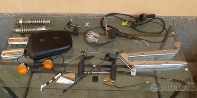 Per TU 250: faro nero nuovo, ancora in scatola 140, centralina elettronica 110, blocco accensione, tappo serbatoio, bloccacasco e sblocco sella con chiave 90, strumentazione con 11.700 km 90, copertura sella passeggero 20, fianchetto sinistro grigio 25, parafango anteriore e posteriore neri 80, Ruota anteriore 80, leva freno posteriore con asta 40, supporti faro 40, paracatena 25, forcellone 45. Per Marauder impianto frenante completo 100, ammortizzatori 45, pedana sinistra con comandi e cavo freno 30, sellino post 20 blocchetti elettrici e acceleratore con cavi 80, 2 frecce 25, specchietto 15, meccanismo apertura sella 15, albero a cammes 35, relè accensione 15, relè frecce e cavalletto laterale 15. Non spedisco, vendita solo in loco dopo presa visione.
