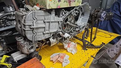 Carene bianche incidentate 530 ,riproduzione posteriore bcd in vetroresina , testa cilindri con pistoni 560 , albero motore con bielle con 6000 km completamemte nuovi kit catena completo forcellone per 530