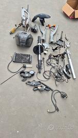 vari ricambi usati per aprilia rs 125 2t montano su diversi modelli come la chesterfield la racing ecc. carena serbatoio radiatore forcella piastre specchietti forcellone impianto elettrico bobina frecce semimanubri tachimetro contagiri faro. altre informazioni e foto contattare via email