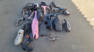 vari ricambi usati per gilera runner 50 125 180 sp kat primo modello carene sinistre anteriore e posteriori ruota anteriore ammortizzatore posteriore ventola radiatore (cupolino con aggancio rotto), sottosella sella manubrio faro anteriore (del modello 50) copricarter in plastica scatola filtro parte interna (rovinata) parafango anteriore motorino avviamento. la marmitta non so che modello sia perché non si legge più la scritta