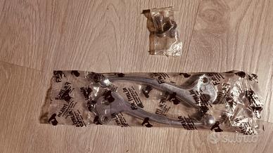 Vendo per cambio progetto pezzi vari per restauro vespa: 1) Cavi e guaine per; marce, frizione, freno ant, freno post, gas. 2) Piedini cavalletto 3) gomma passa cavo scocca. 4) strisce poggia piede pedana 5) leve freno & frizione
