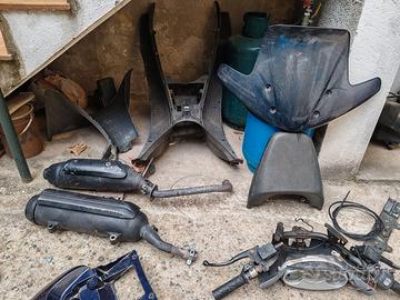Carene, plastiche, manubrio, sella e sottosella, serbatoi, marmitte per 125 e 150, cerchi compresi di dischi freno e gomme ancora usabili, pinze freni, tubi e pezzi idraulici ed elettrici, forcelle, parabrezza piccolo completo, portatarga, ammortizzatori, cavalletto etc etc