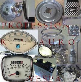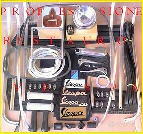 Pezzi di ricambio KIT Restauro 230euro (FOTO 1 e 2) Manopole chiare Piaggio Fanale anteriore Ghiera / cornice faro Leve del freno e frizione + 2 perni Cresta parafango Scritta ant. corsivo VESPA + ribattini Emblema Piaggio Protezione bordo anteriore in alluminio Coprioscillante ruota ant. Gommini per: freno pedivella leva mix gommino tubo benzina e passacavi Gommini cavalletto Guarnizione claxon Guarniz serbatoio Guarnizioni chiare dei cofani Strisce pedana complete di gomma nera,puntali e rivetti Tappetino centrale + coppia listelli Tappeto grande per le pedane Vetrino del fanalino stop post. Cornice targa cromata IL COSTO DI QUESTO KIT è 230 EURO A parte altri accessori di carrozzeria e motore coi prezzi di fianco : E = EURO Guaine + fili comandi nuovi E20 Cerchione E30 Forcella completa E220 Parafango E39 Sella singola ant. + Cuscino post. E125 Piastra per sellino post. E34 Sella lunga ripr. E75, originali E125 Pedana in ferro E89 Scudo completo E189 Claxon Cavalletto E18 3 gomme nere 3.50 - 8 E58; fascia bianca E90 Impianto elettrico E33 Pulsante luci E24 Batteria E39 Marmitta E56 Bloccasterzo E16 Serratura cofano E17 Adesivi norme rodaggio + usare mix 2% E10 Modanature fregi cofani E32 Ammortizzatore ant. E28; post. completo E35 Mollone ant. E20 Fanalino Stop E48 Porta ruota scorta ant. E24; Post. E35 Copriruota di scorta E32 Ganasce freno ant. E9; post. E18 Ralle sterzo E25 Contachilometri VNA VNB E65 10 Dadi ruota E14 Rubinetto benz. + asta metallo E18 Guarniz. motore E7 Paraoli + OR E14 Gruppo termico E145 Kit cuscinetti mot. E65 Carburatore 20/15 E75 Copriventola E24 Statore E89 Gancio cofano E9 Paraspruzzi post. E9 Scocche Cofani laterali E220 Accessori adatti per: VESPA125 VNA VNA1T VNA2T VNB VNB1T VNB2T VNB3T VNB4T VNB5T VNB6T