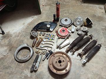 A prezzi modici, vendo i ricambi vespa in foto. (l'ammortizzatore rosso e' stato venduto) Posso spedire