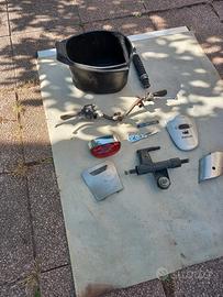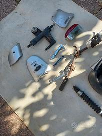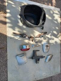 sottosella portacasco €30,manubrio con leve e pompa freno €40, fanale posteriore completo €20, ammortizzatore posteriore €20, supporto motore €30,coperchio forcella anteriore €15, scritta Vespa cromata €10, portellino accesso candela €30.