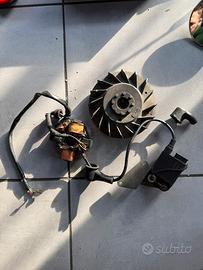 Cerchi con gomma seminuova 350-10 (40€) Cuffia 50 originale (20€) Carterino frizione HP a cremagliera (80€) Carburatore originale 16.10 (50€) Copriventola in plastica (15€) Filtro Marchald per carburatore 30 (20€) Collettore con guidaflussi carburatore 30 per Quattrini m1L (40€) Fanalino posteriore (10€) Camma maggiorata per gas rapido (10€) Accensione elettronica PK (70€) (VENDUTA)