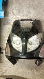 supporto bauletto givi, 2 motori, carene e plastiche interne, impianto elettrico, cruscotto, forcella, ruote, regolatore, serbatoio, kit serrature e altre cose. No sella, no carburatore né pompa acqua. Chiedere per disponibilità e prezzi. Non spedisco le parti ingombranti come motore e carene. Il resto sì.