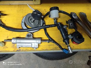 2007 2008 Vari Ricambi: Forcellone,codone bianco da rivedere,tappo serbatoio e serratura sellino, cablaggio per bobine,corpo farfallato,perni ruota,ventole,airbox,pompa freno post.Scarichi completi di terminali originali e attuatore smontati da nuova pedane passeggero...plastiche nere varie no carene...ecc