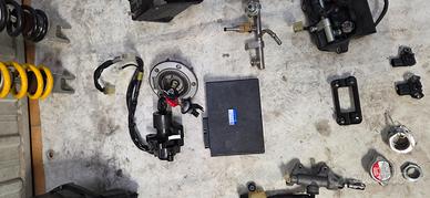 sensore nuovo universale a 2 fili per cambio elettronico €85. cavetto e software yec ges ecu by peppo russo (software nuovo abilitato blipper) per centralina yec con cablaggio yec oppure con cablaggio orig. 06/16 €170 db killer per terminale arrow €35 supporto yec per regolatore di tensione €20 airbox originale con cornetti variabili r6 08/25 €180 Tronchetti di ricambio nuovi valter moto diametro 22mm €35 la coppia. Corona in ergal passo 525 per cerchi marchesini /OZ da 45 denti €20. Corone 525 usate in acciaio r6 03/25 rapporti 43-45 €20 cad. Corona nuova sitta in ergal trattamento ossido duro passo 520 44 denti euro 55. leveraggio originale mono ammortizzatore posteriore €40 Bobine originali €35 cad. perno ruota post 25 perno ruota anteriore €40 ventole originali €40 la coppia kit chiavi e serrature compreso centralina originale r6 08/16 €280 Comando gas orig. Con cavi €50 specchietti originali €40 la coppia pedana originale passeggero dx €20 airbox 06/07 €50 Mascherina per luce di posizione originale 06/07 €35 copripignone€20 pinza freno posteriore originale €20 pompa freno posteriore €40 regolatore di tensione originale €50 sella pilota nera originale r6 17/25 €30 terminale originale usato. €50 terminale originale nuovo €70 pastiglie freno anteriori usate sbs,ferodo, Brembo rosse €20 cad. Motorino exup €20 Cartucce forcella con molle originali €85 Pedana pilota originale dx €45 nuova Pedane passeggero nere originali r6 17/25 €30 Registri catena originali €40 Cavalletto laterale €35 Kit chiavi e serrature originali Ricambi motore,tendicatena distribuzione ,sensori vari,tubi acqua,volano,Boccole e distanziali cerchi, pattino catena,blocchetto chiavi ,cilindretto sella,tappo serbatoio originale,plastiche varie originali, condotti aria,tubi acqua, bulloni originali. ecc ecc Carene varie sfuse per cessata attività in pista vendo anche: paraschiena forcefield euro 40 porta cerchi artigianale euro 25 visiera trasparente nuova agv pista gp €30