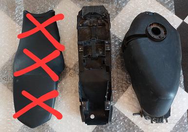 Vendo i ricambi presenti in foto per Yamaha tzr 50 : - ammortizzatore posteriore paioli - serbatoio olio miscelatore - pedana anteriore sinistra - plastica vano sottosella - serbatoio - parafango posteriore - bobina di accensione - blocchetto comandi destro - sensore freno posteriore - cavo guaina aria starter - pompa freno con tubo freno - pompa freno - cavo guaina gas - corona - carburatore - regolatore di tensione - filtro a cono - serratura apertura sella - sensore valvola aria anti inquinamento - fascetta terminale scarico - clacson Per informazioni e prezzi contattatemi