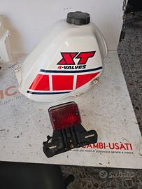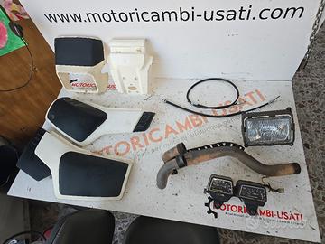Ricambi Yamaha xt 600 43f -Telaio targato 500.00 -Motore 700.00 -Carburatore revisionato 240.00 -Coppia cerchi 350.00 -Forcelle con piastre 220.00 -Pedivella avviamento 120.00 -Pedane passeggero 60.00 -Pedane pilota e pedale freno 80.00 -Impianto frenante anteriore completo 150.00 -Comando frizione con leva e tirante aria 40.00 -Cavalletto laterale completo 50.00 -Forcellone 80.00 -Mono ammortizzatore 80.00 -Paramotore 60.00 -Para catena superiore 30.00 -Cassa filtro completa 80.00 -Serbatoio olio con tubi 100.00 -Rinvio Contachilometri 40.00 -Leva cambio 20.00 -Clacson 20.00 -Treccia impianto elettrico 80.00 -Centralina 160.00 -Bobina 40.00 -Regolatore di tensione 40.00 -Vano batteria 20.00 -Coppia fianchetti laterali 150.00 -Mascherina 50.00 -Codino 50.00 -Strumentazione 220.00 -Faro anteriore 40.00 -Collettori di scarico 50.00 -Cavo contachilometri 20.00 -Cavo contagiri 20.00 -Cavo frizione 20.00 -Serbatoio con tappo rubinetto e trattamento interno tankerite 250.00 -Sella 120.00 -Fanalino posteriore con supporto targa 70.00