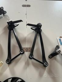 pedane passeggero 40 euro ammortizzatore di sterzo ohlins orignale piu piastra e blocchetto chiavi con chiave 150 euro centralina completa piu statore 200 euro perno ruota anteriore e posteriore completi di spessori 40 euro ventola compreso di attacchi e cavetto corrente piu vaschetta rifrigerante originali 60 euro