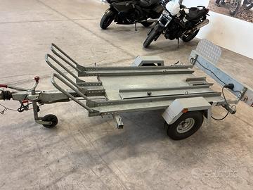Rimorchio per due/tre moto marca Righetti del 2008. Pneumatici nuovi e revisione valida fino a 09/26. Portata utile 400 kg. Rimorchio immatricolato quindi si dovrá fare il passaggio di proprietá.