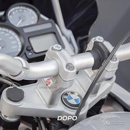 MODELLO 1 CHE ALZA di 30mm Video Tutorial : https://youtu.be/FtJpzyBv4kc riser alzamanubrio per gs 1200 dal 2008 al 2012 consente un'impostazione di guida sulla vostra moto più comoda , infatti il seguente accessorio alza il manubrio di 30mm che consente di avere una schiena più eretta e rilassata durante la guida evitando affaticamenti soprattutto sulle lunghe percorrenze. È necessario modificare i cavi per l'installazione? Si installano senza modifiche alla moto , il nostro kit riser su gs 1200 2008 al 2012 è stato progettato per non dover applicare modifiche o spostamenti ai cavi e tubi dei comandi a manubrio. MODELLO 2 CHE ALZA di 20mm e arretra di 30mm Utilizzo dei nostri Alzamanubrio BMW GS1200 2008 2013 std adv da 20mm che arretrano di 30mm : Grazie a questa coppia riser per bmw r1200gs sia per versione bialbero che monoalbero (in modello standard che adventure) avrai la possibilità di migliorare la postura alla guida in modo più rilassata e dritta Questo ti permette una guida più diretta (il controllo della moto sarà migliorato) con più facilità nella gestione grazie a quei 30mm che arretrano il manubrio verso il guidatore . Invece l'alzamento dei 20mm presenti nei nostri alzamanubrio bmw gs1200 2008 2013 std adv permettono anche di stare in piedi quando si è alla guida in off-road , senza affaticarsi più del dovuto e avere un controllo migliore di conseguenza. Lavorazione : Sono realizzati in alluminio fresato e controllati manualmente ad occhio , sono inoltre sabbiati a microsfere di vetro . Nota : I riser per bmw r1200gs bialbero e monoalbero sono specifici per il piantone del modello standard dal 2008 al 2012 e per il modello adventure che va dal 2009 al 2013 , se desiderate dei riser Compatibilità : R1200GS Standard 2008-2012 R1200GS Adventure 2009-2013 COSTO : MODELLO 1 80€ MODELLO 2 170€