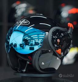 Taglia S, nero lucido. Visiera blu mirror + trasparente. Mai usato..