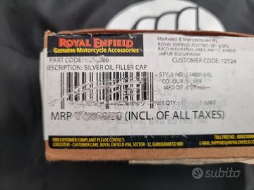 Vendo Tappo Serbatoio Olio in Alluminio Originale del catalogo Royal Enfield Ufficiale per Interceptor o Continental Gt Originale costo 30€