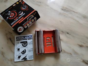 Rullo G roller di supporto utile per lavori manutenzione per moto (ma anche biciclette). Si può portare con sé durante viaggi o gite in moto. Utilizzo molto smart in caso di lavori come pulizia catena, pulizia cerchioni, controllo gomme etc...