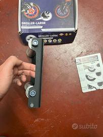 Strumento che fa scorrere la ruota posteriore per facilitare le operazioni di ingrassamento e lubrificazione catena dove è difficile alzare la moto.