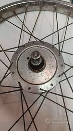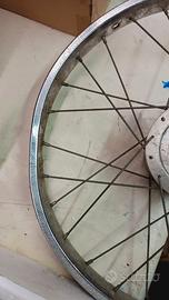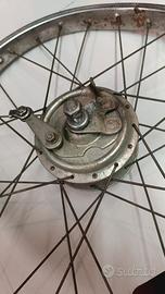 RUOTA anteriore per Ciao anni 90. Presenta una brutta botta (come si vede in foto) ed il cerchione credo sia da sostituire. Mozzo in buone condizioni. Chiedo 15 euri