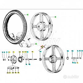 (R.2956) Vendo cerchio anteriore in lega 1.35 x 16 usato per Piaggio Si - Si FL2 - Boss - Bravo Erre 2 con codice Piaggio ruota 267609 e codice porta ceppi 198242 o 188341 con diametro porta ceppi interno 105 mm , il prezzo si intende per singolo pezzo , per applicazioni ed esploso vedere foto , disponibili più modelli :