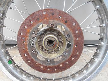 Vendo ruota cerchio cerchione posteriore completo da 18 pollici, marca akront in alluminio, cerchione enduro, ncagiva k7 k 7 125, la corona è marchiata cagiva 44 denti, perno ruota 17mm. Ruota degli anni 90, può darsi compatibile anche con cagiva wmx, cagiva elefant o cagiva aletta, fornisco misure dettagliate su richiesta