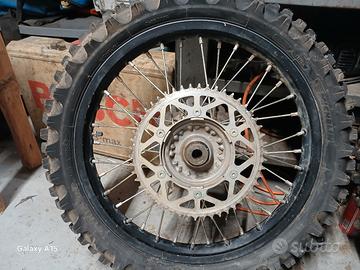 come da titolo vendo ruota da cross da 19", monta gomma michelin 100/90-19, corona p.b.r. da 50 denti, misure cerchio 19×1.85. compatibile con ktm husqvarna gas gas ritiro a mano