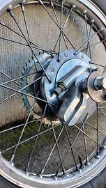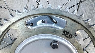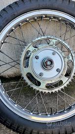 RUOTA CON CERCHIO IN LEGA COMPLETA DI PNEUMATICO PIRELLI 3.00X17 MOZZO CON CEPPI FRENO CUSCINETTI NUOVI CORONA 52 T SEMINUOVA CON PARASTRAPPI PIGNONCINO KM 1 TENDICATENA E BULLONE ASSE CON UN DADO. CERCHIO LEGGERMENTE AMMACCATO E RADRIZZATO CON CENTRATURA RAGGI. TUTTO COME DA FOTO POSSIBILITA' DI SPEDIZIONE CON CORRIERE A 18 EURO