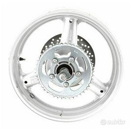 (R.6115) Vendo cerchio posteriore J 17 X MT4.50 e J17XMT4.50 usato per Suzuki GSF Bandit 600 anno 2000, 2001, 2002, 2003, 2004 completo di disco freno posteriore con flangia portacorona e corona 47 denti , perno fissaggio ruota con gomma parastrappi ecc e codice Suzuki 64111-08F11-35W o 6411108F1135W , per misure applicazioni ed esploso vedere foto