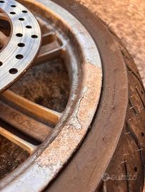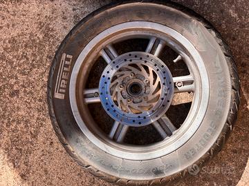 Le ruote montano entrambe Pirelli Angel Scooter quasi nuove. Ant. 120/70-15 Post. 130/80-15. I dischi dei freni sono in buono stato.