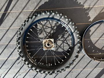 Ruota anteriore 17 completa ,senza disco copertone quasi nuovo . Cerchio posteriore 14. Comprate originali KTM usate 3 mesi.