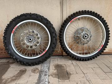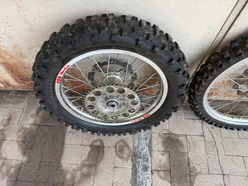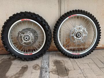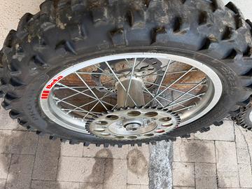 Vendo ruote cerchi beta rr, 21 anteriore 18 posteriore in perfette condizioni con dischi, corona, distanziali e pneumatici ancora al 70/80 % Montano su beta 250 300 350 390 400 430 480 498 520 dal 2007 al 2025 Montano anche su KTM HUSQVARNA GAS GAS