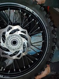 Vendo coppia di ruote Excel complete di corona e disco freno (praticamente nuovi) come da foto, venivano usate su Husqvarna tc125 del 2022 come ruote di riserva, compatibili per KTM e Husqvarna e gas gas.