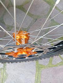 Ruote complete di dischi, corona copertoni per ktm cross, 19,21,copertoni dunlop mx33 discreti, mozzi faba, cerchi did, vendo x cambio marca di moto, faccio cambio con ruote per yamaha 2t con cerchio nero