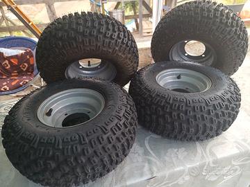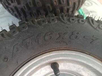 coppia di 4 ruote complete cerchi e gomme mai usate per quad e Buggy e carrozzina Observer per vari modelli le misure sono ATI 16X8-7 o messo anche le misure tra i perni , chi e interessato mi contatti, no faccio spedizione solo ritiro in sede.