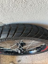 Vendo per Honda Transalp 750 /Africa Twin 1100,coppia di Ruote complete di gomme ,come nuovi percorsi solamente 1000 km ,nessun segno cerchi in colorazione nero lucido ( bellissimi)con raggi inox , e adesivi orginali Honda (rimovibili) Gomme : METZELER KAROO STREET,