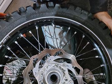 vendo ruote Excel con disco e corona come da foto , venivano usate come come ruote di riserva per un Husqvarna tc125 2022, compatibili con ktm, Husqvarna e gasgas. cerchi ben tenuti e raggi sempre regolati. vendo per passaggio a cilindrata superiore.