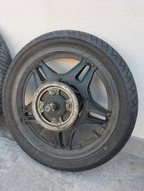 Vendo ruote Honda Bol D'or tubeless complete di tutto. Riverniciate nere in carrozzeria e perfettamente dritte. Usate per circa 2000 chilometri. Gomme da sostituire. Permettono di montare gomme più larghe rispetto ai modelli di fine anni 70. Le vendo perché passo a cerchi a raggi. Spese di spedizione da concordare. Possibilità di consegna a mano in veneto.