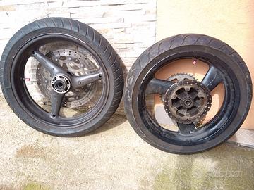 Ruote Motard complete di dischi e corona modificate per drz 400. Erano montate su una drz valenti.